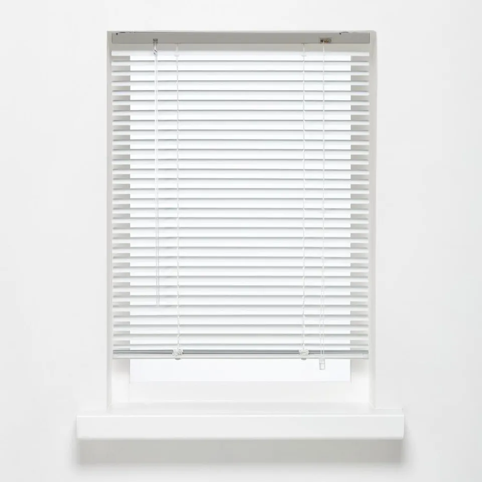 Jaloezie met witte aluminium stroken van 25 mm. Ideaal voor het regelen van licht en privacy. Eenvoudig zelf te monteren…