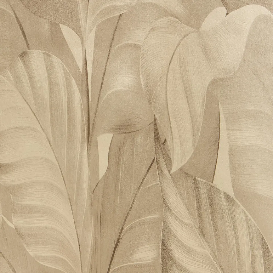 100% vliesbehang DuurzaamPrachtig bladeren patroon Vliesbehang Olivia in sfeervolle gouden kleur met een prachtig blade…