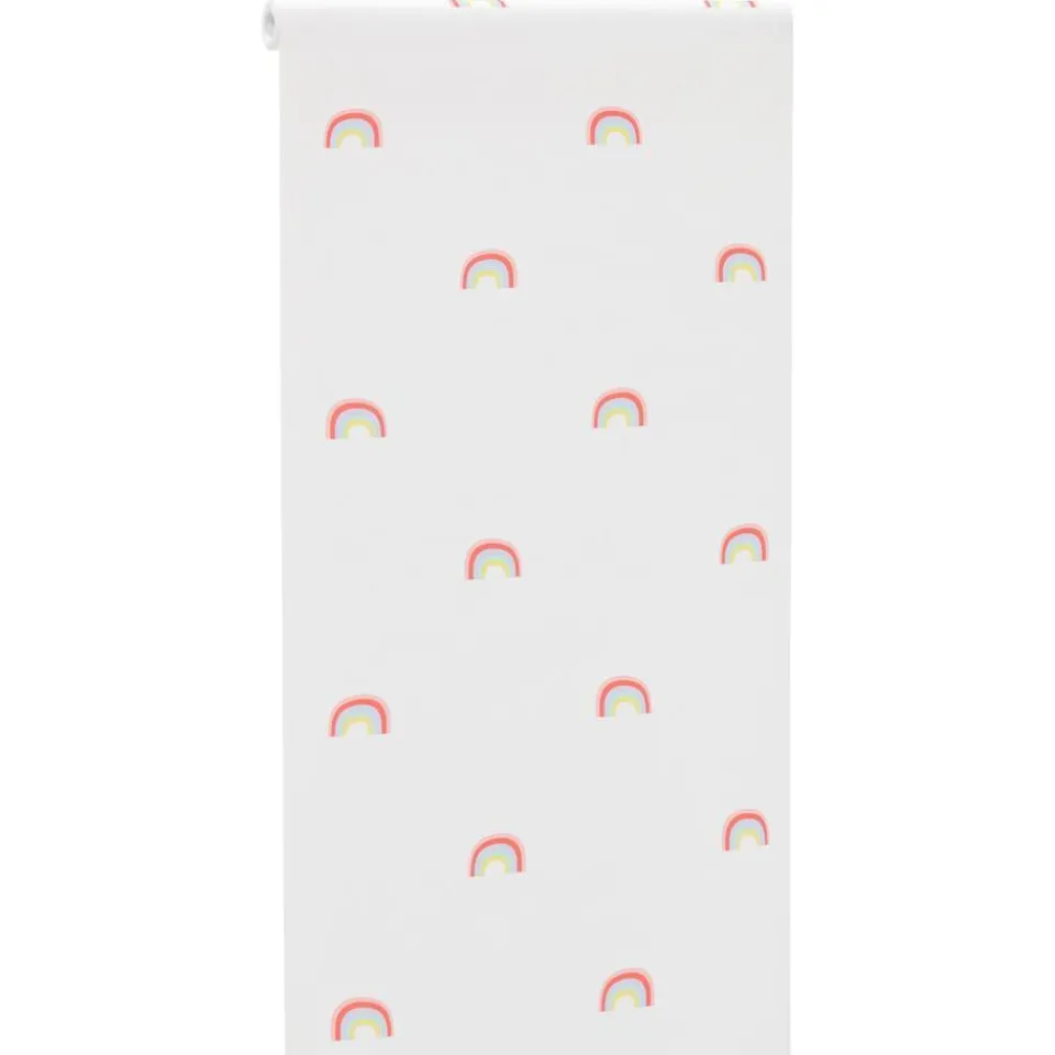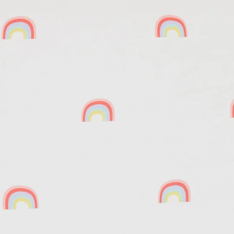 Vliesbehang met vrolijke regenboog print. Licht afwasbaar. Voorzien van het FSC-keurmerk. 10 meter per rol.