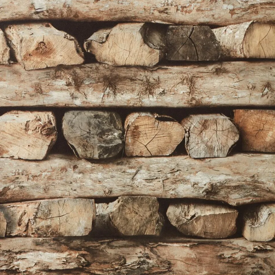 Vliesbehang met robuuste houtblokken print voor een natuurlijke look in huis. Goed afwasbaar. Voorzien van het FSC-keurm…