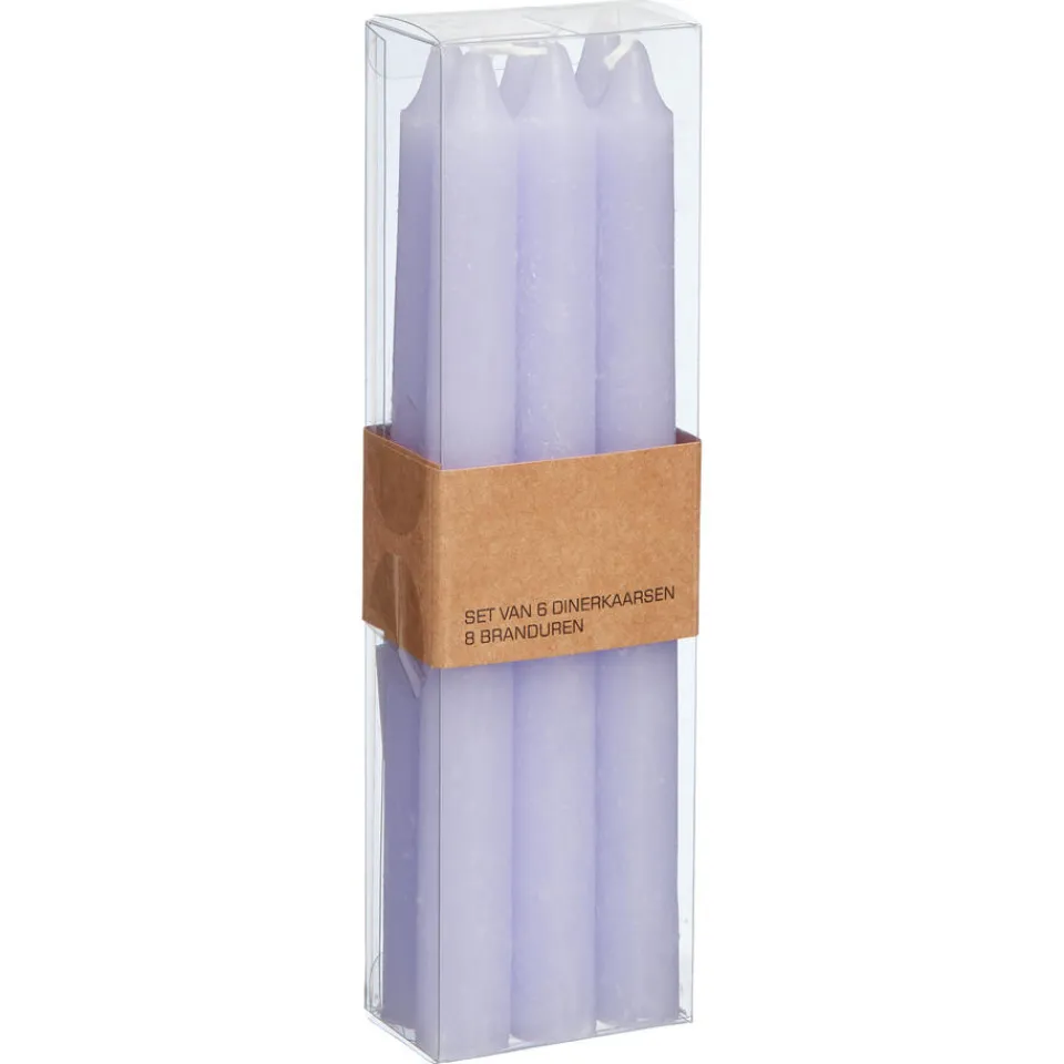 Ervaar de perfecte stijl en gezelligheid met deze lila dinerkaarsen van 20 cm. Deze set van 6 kaarsen,met elk 8 brandure…