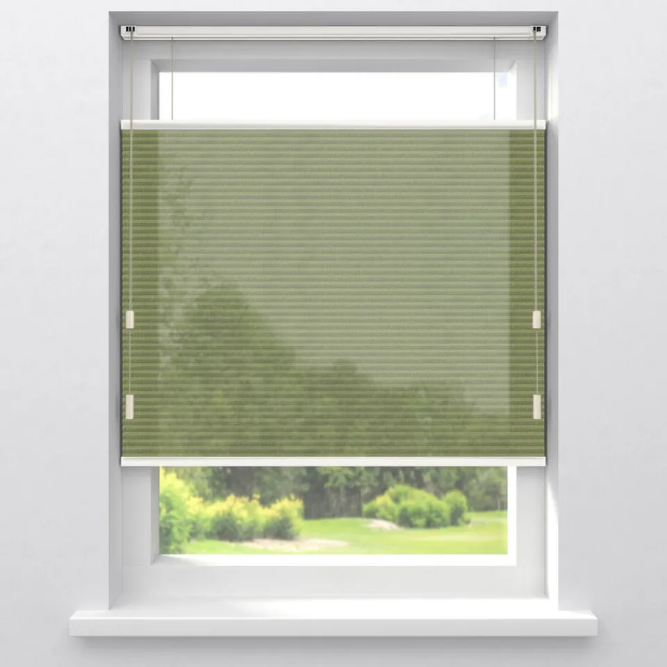 Plisségordijn Maud Groen is een transparant dubbel plisségordijn. Dit betekent dat het een honinggraatstructuur heeft en het geeft daardoor een luxe uitstraling. Dit plisségordijn heeft een plooibreedte van 25mm en is daardoor zeer geschikt voor kleine tot middelgrote ramen.