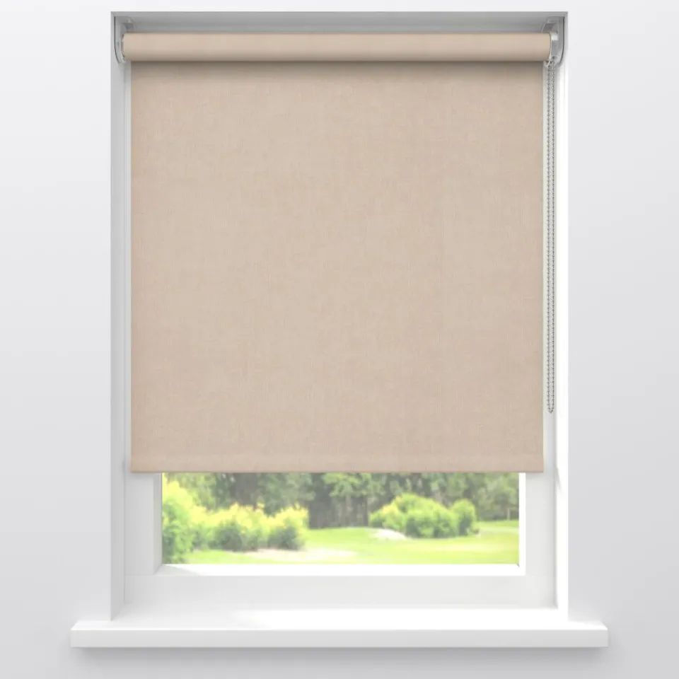Deels verduisterend rolgordijn Gus Zand in velours met een subtiele structuur. De meekleurende achterzijde zorgt voor 90% verduistering. Ideaal voor slaapkamers maar ook te gebruiken voor keukens en andere woonruimtes. Op maat te maken en volledig naar wens samen te stellen met een ruime keuze uit accessoires en uitvoeringen. Elektrische bediening en zijgeleiding is mogelijk. Ook geschikt voor draaikiepramen. Eenvoudig met een vochtige doek af te nemen.