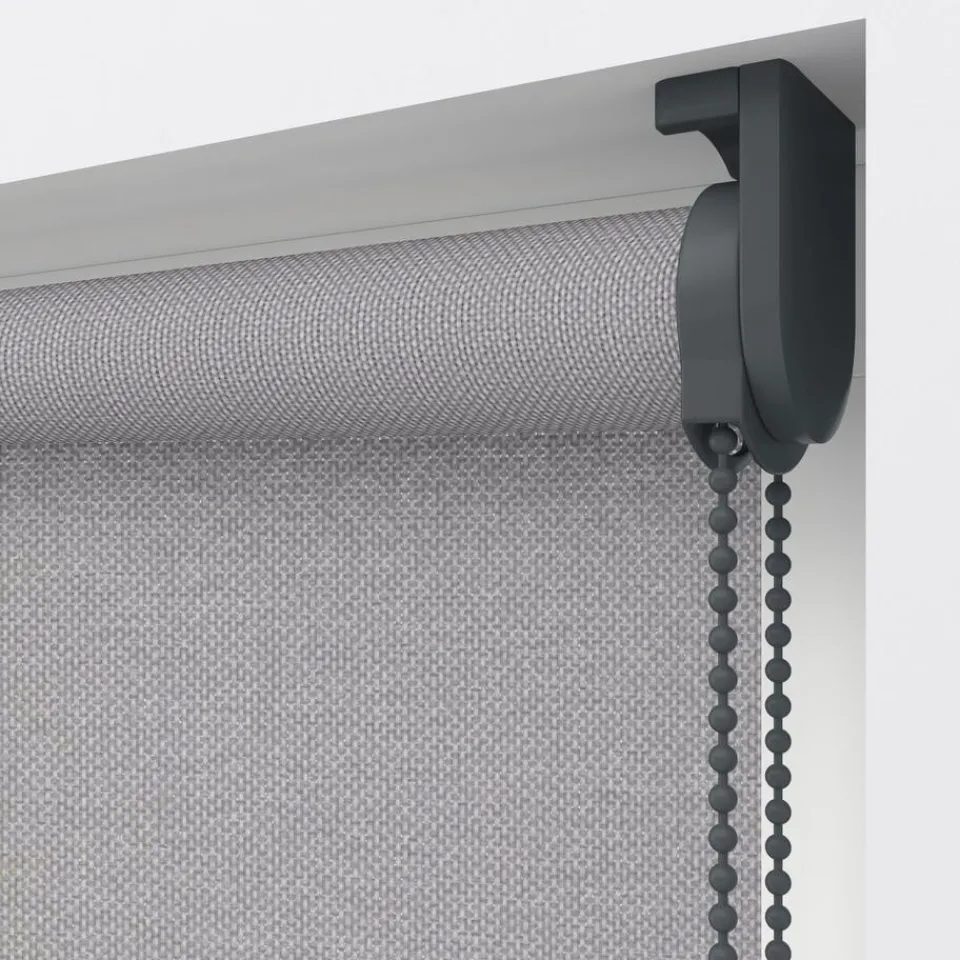 Transparant rolgordijn grijs gemêleerd met structuur. De stof laat veel licht door en filtert lichtinval op een natuurl…