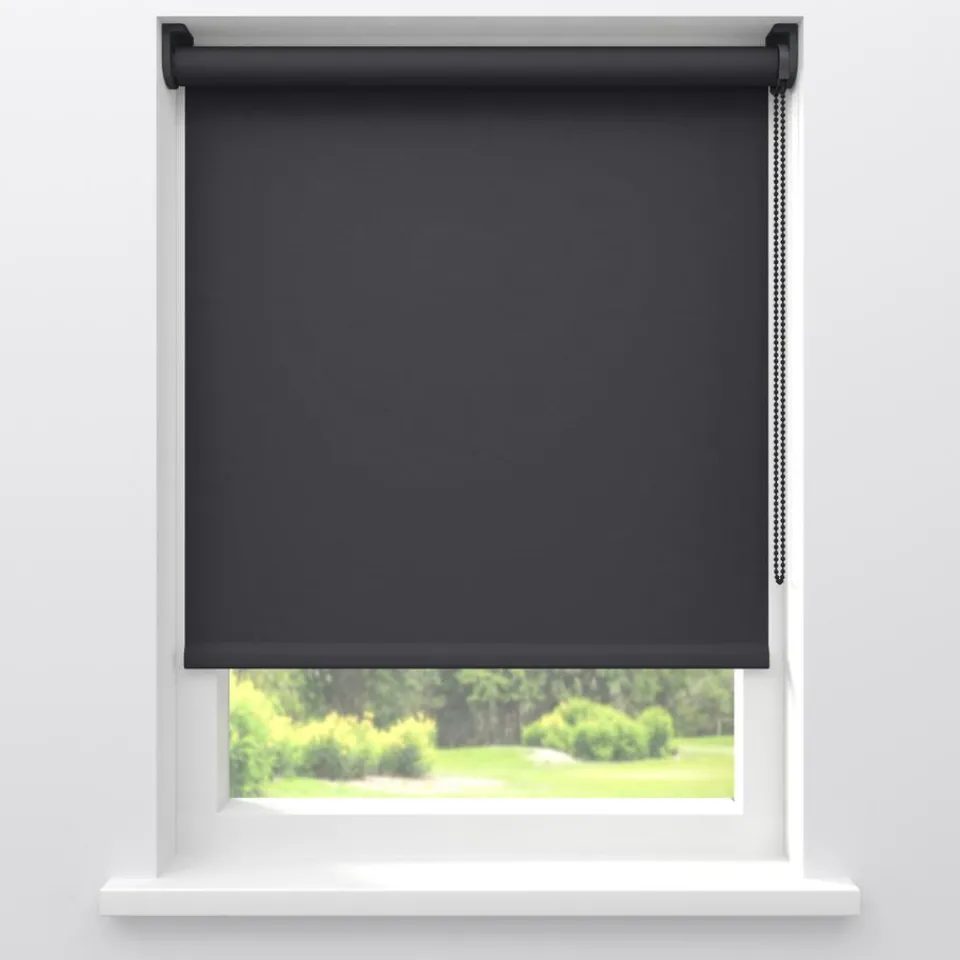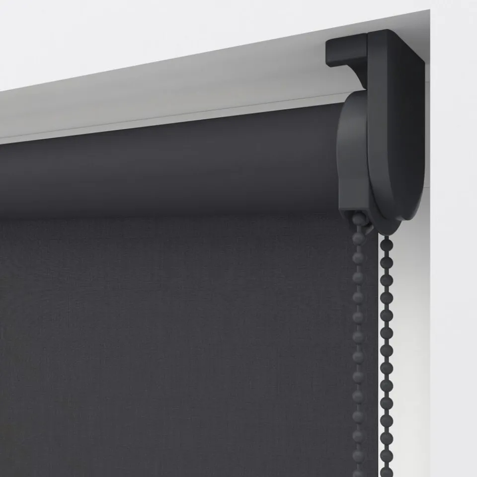 Lichtdoorlatend rolgordijn antracietkleurig. De stof heeft een minimale lichtdoorlatendheid vanwege de donkere kleur. De…