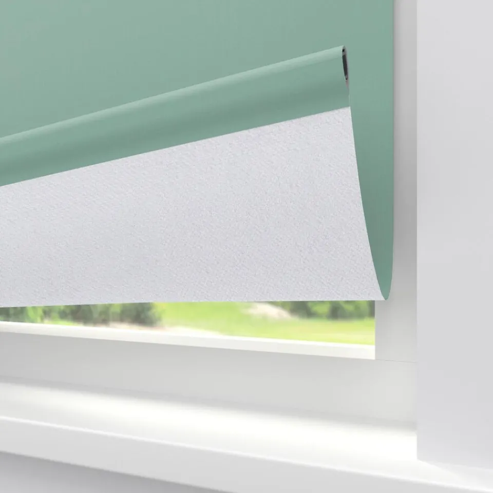 Verduisterend rolgordijn lichtgroen. De witte achterzijde zorgt voor volledige verduistering. Ideaal voor slaapkamers ma…