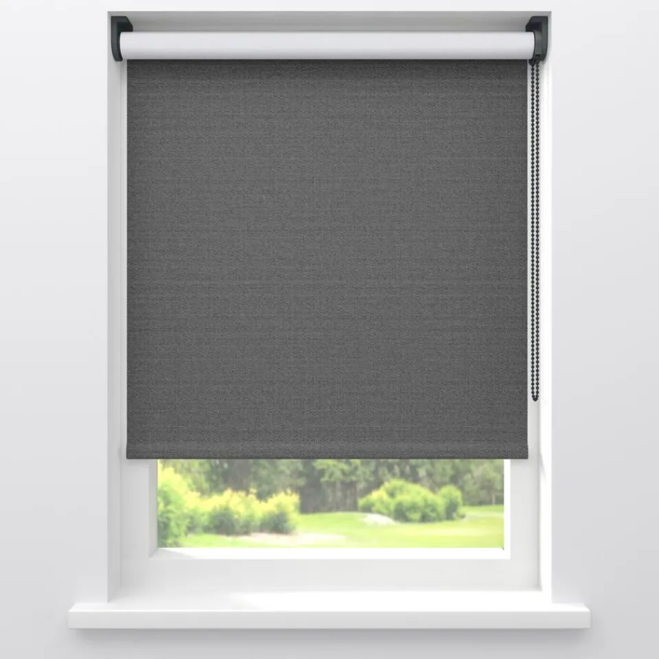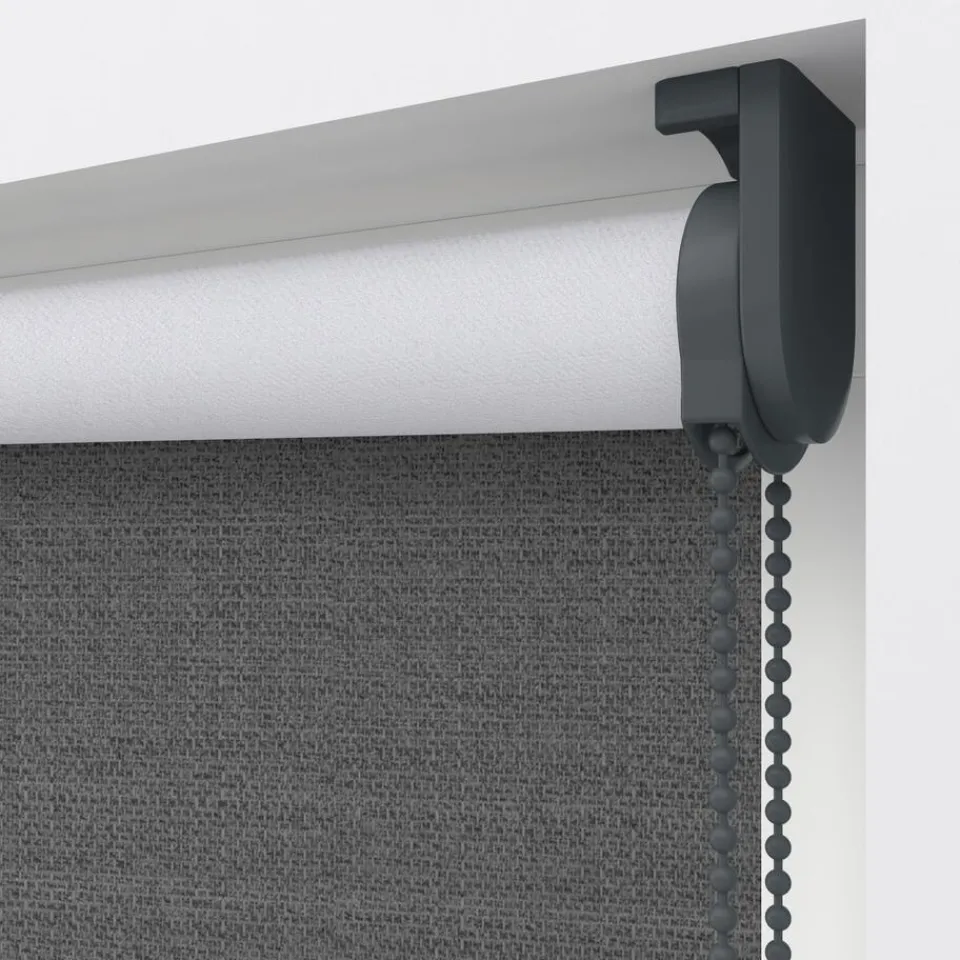 Verduisterend rolgordijn antracietkleurig met een grovere structuur. De witte achterzijde zorgt voor volledige verduiste…