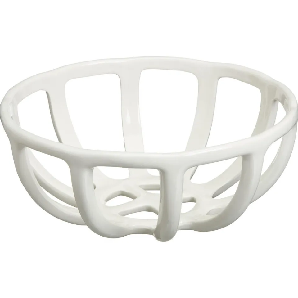 De moderne en trendy Lisen fruitschaal in wit heeft een diameter van 21,6 cm en is gemaakt van duurzaam aardewerk (stoneware). Deze stijlvolle schaal voegt een elegante touch toe aan je keuken of eetkamer, perfect voor het presenteren van fruit of als decoratief element.