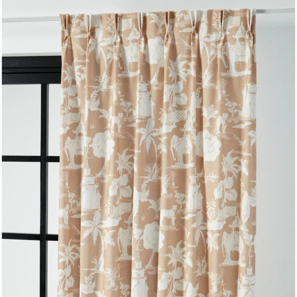 Lichtdoorlatende gordijnstof van 100% naturelkleurig katoen met botanische print. De luchtige ademende gordijnstof is sterk, slijtvast en valt soepel. De stof is kreukgevoelig. 140 cm breed.