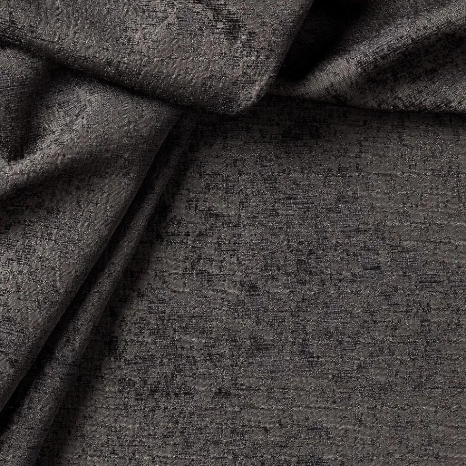 Lichtdoorlatende antracietkleurige gordijnstof. De geweven structuur en de glans zorgen voor een luxe en volle uitstrali…
