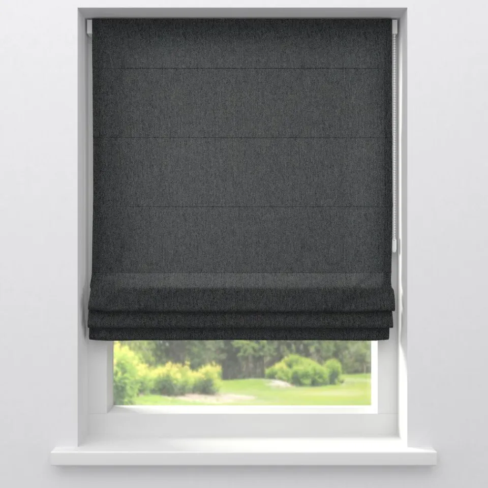 Gordijnstof antracietkleurig van gemêleerde stof. Soepelvallend, stevig en kreukherstellend. 146 cm breed.