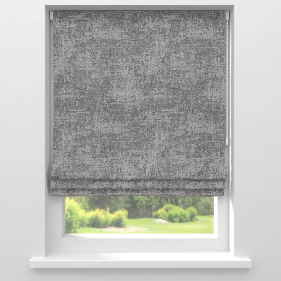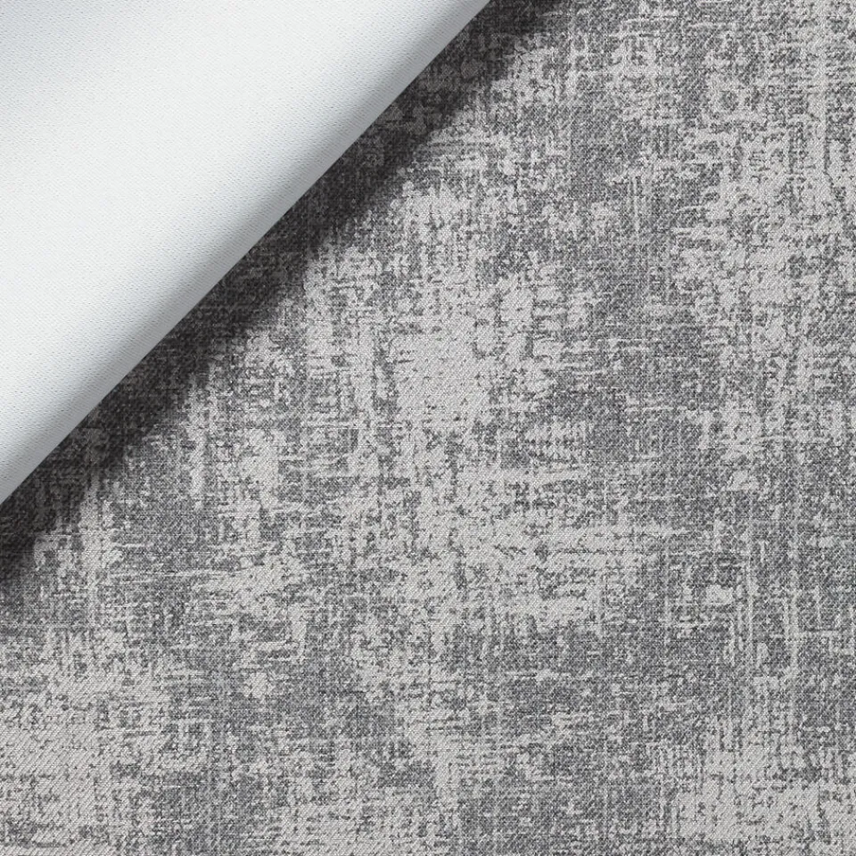 Verduisterende gordijnstof van stevig grijs materiaal met verweerde look. Soepelvallend en kreukherstellend. 138 cm breed.