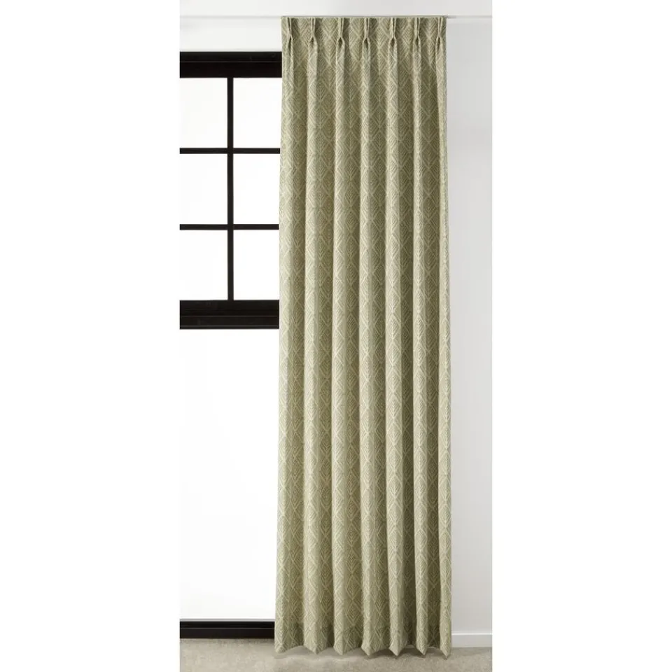 Lichtdoorlatende gordijnstof met groene kleur en een sfeervol ruitpatroon. Stevig, soepelvallend en kreukherstellend. Het weef/drukstof zorgt ervoor dat er geen luchtstroom door het materiaal mogelijk is en hierdoor heeft het een perfect isolerende werking. Het houd koude lucht buiten en warme lucht binnen. Deze gordijnstof wordt warmer dan glas, zodat het binnen met gesloten gordijnen lekker behaaglijk aanvoelt. Hierdoor ontstaat er ook minder tocht. Door te kiezen voor een dikke stof (o.a. Sandra, Muck, Romeo, Benji, Jasmijn, Muck, Lou of Cloé), kan de verwarming mogelijk een graadje lager. Laat de verwarming vrij bij het hangen van gordijnen, dit zorgt ervoor dat de opstijgende warmte niet tussen het gordijn en het raam terecht komt. Het is handig als je gordijn op de vensterbank eindigt. Daarnaast kun je ook denken aan een combinatie tussen plisségordijnen en een overgordijn voor een extra isolerende werking.