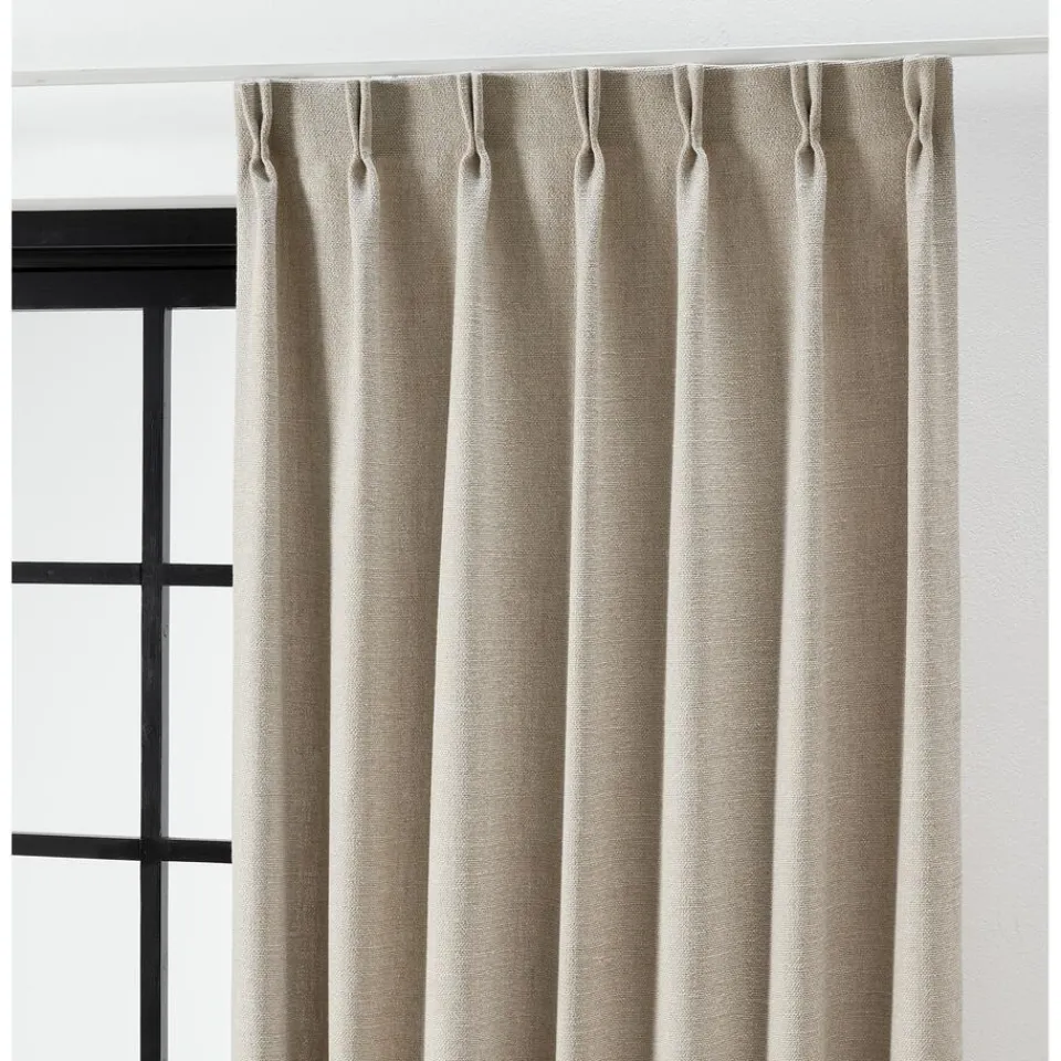 Lichtdoorlatende linnen gordijnstof naturelkleurig. Het weef/drukstof zorgt ervoor dat er geen luchtstroom door het materiaal mogelijk is en hierdoor heeft het een perfect isolerende werking. Het houd koude lucht buiten en warme lucht binnen. Deze gordijnstof wordt warmer dan glas, zodat het binnen met gesloten gordijnen lekker behaaglijk aanvoelt. Hierdoor ontstaat er ook minder tocht. Door te kiezen voor een dikke stof (o.a. Sandra, Muck, Romeo, Benji, Jasmijn, Muck, Lou of Cloé), kan de verwarming mogelijk een graadje lager. Laat de verwarming vrij bij het hangen van gordijnen, dit zorgt ervoor dat de opstijgende warmte niet tussen het gordijn en het raam terecht komt. Het is handig als je gordijn op de vensterbank eindigt. Daarnaast kun je ook denken aan een combinatie tussen plisségordijnen en een overgordijn voor een extra isolerende werking. 142 cm breed.
