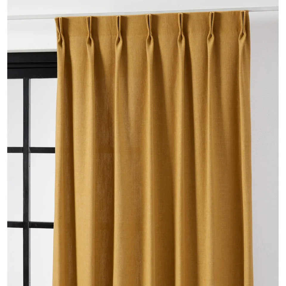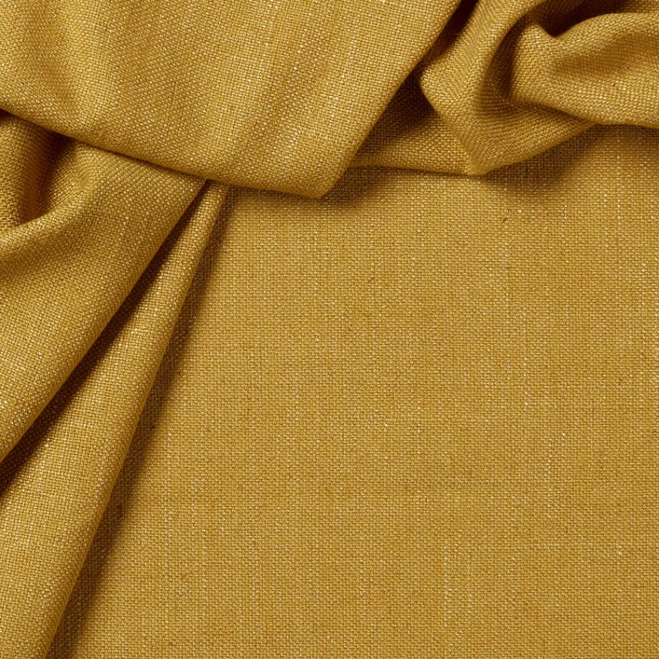 Lichtdoorlatende gordijnstof Ruben in een stoere okergele kleurtint. Deze soepel vallende gordijnstof bestaat uit een mix van materialen (36% polyester, 22% viscose, 16% linnen en 26% katoen) en heeft een subtiele glans. Sterk, slijtvast en redelijk kleurvast. Iedere gordijnstof kent specifieke eigenschappen. Omdat linnen een natuurproduct is en uit natuurlijke vezels bestaat, gedraagt deze stof zich anders dan een polyester stof. Linnen heeft als bijzondere eigenschap dat het 20% van zijn eigen gewicht kan opnemen. Hierdoor kunnen de gordijnen iets korter of langer worden. Dit is afhankelijk van de vochtigheidsgraad in je huis. Om dit op te voorkomen, is linnen vaak gemixt met andere stoffen, zoals polyester. Hiermee blijft de natuurlijke look van linnen behouden, maar is krimpen minder aan de orde en is de kleurvastheid beter. 142 cm breed.