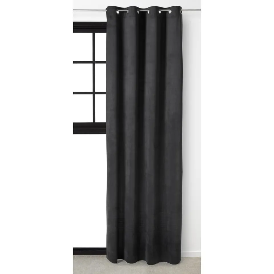 Kant en klaar ringgordijn van stevige zwartkleurige stof. Soepelvallend en kreukherstellend. 140 cm breed.