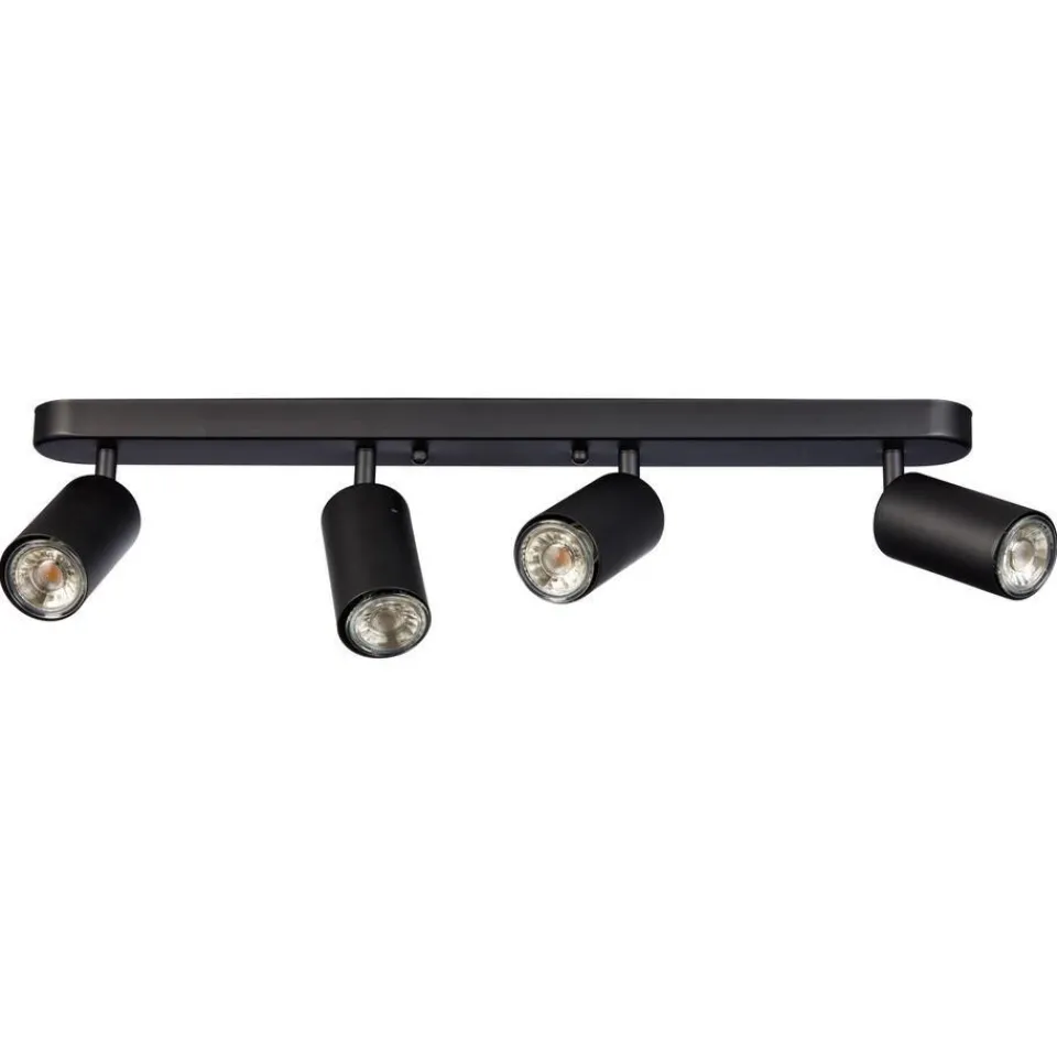 Strakke metalen spot met mat zwarte kleur. 4-lichts. Excl. lichtbron.SpecificatiesKleurZwartMateriaalMetaalProduct afmet…