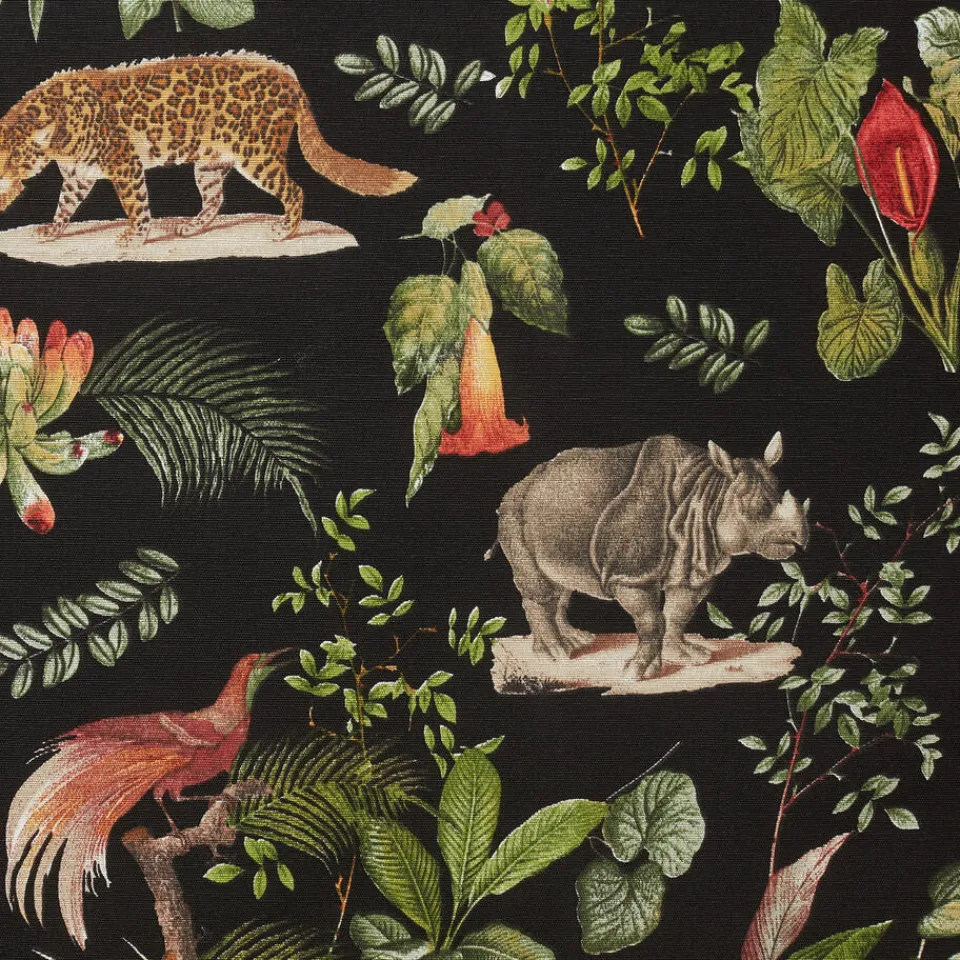 Stof zwart met jungle dieren. 140 cm breed.SpecificatiesKleurZwartMateriaalKatoen, PolyesterProduct afmetingen (cm)140 (…