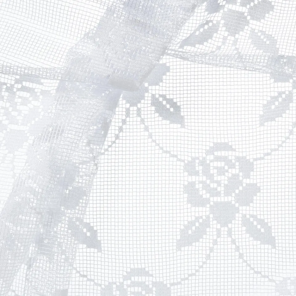 Stof Manuela Wit is een licht doorlatende stof met een geborduurd bloemen patroon. De stof is gemaakt van 100% Polyester. Polyester is een synthetische vezel met veel praktische als duurzame eigenschappen. De stof is dan ook behoorlijk slijtvast en krimpt, kreukt of vervormt niet snel. Deze stof is per meter verkrijgbaar en geschikt voor het maken van gordijnen, kleding, kussens, dekbedovertrekken en nog veel meer.