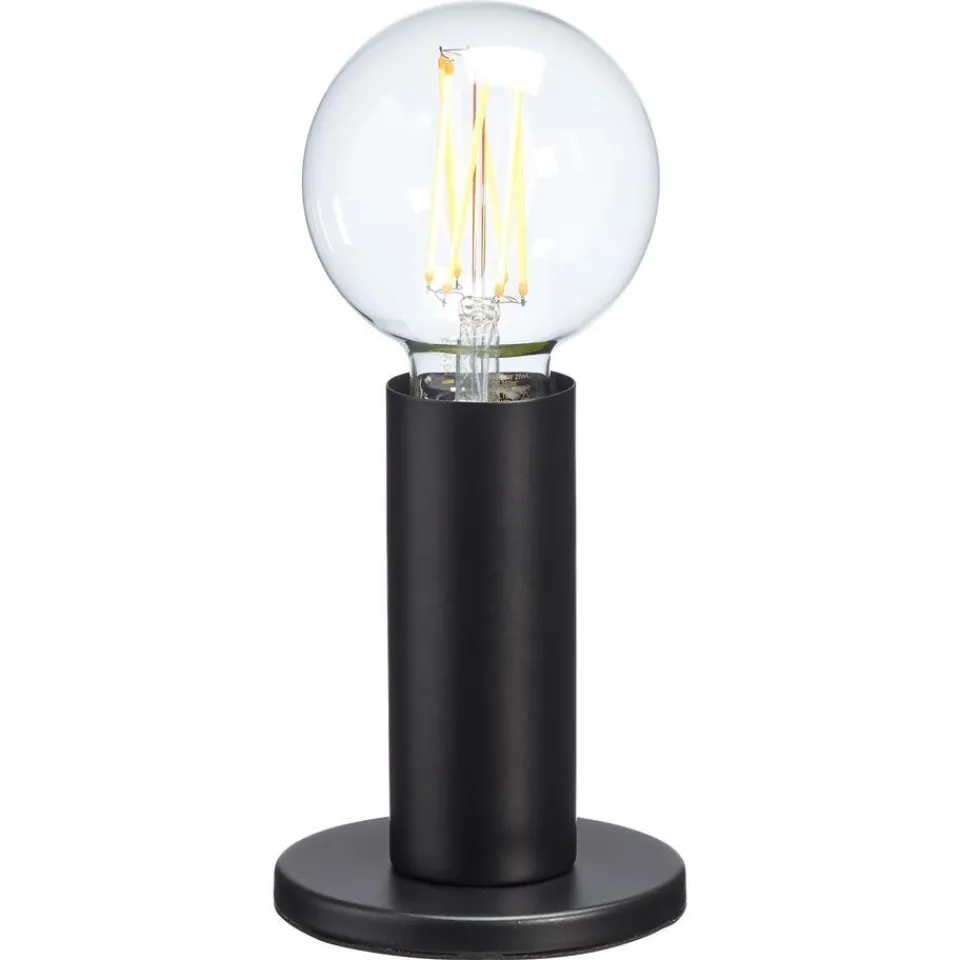 Tafellamp van zwart metaal en doorzichtig glas voor een industriële look. Fitting E27. 14 cm hoog.SpecificatiesKleurZwa…