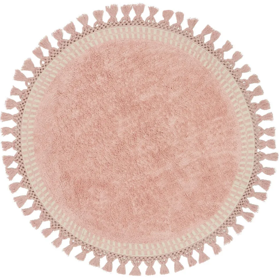 Rond vloerkleed Hana in een roze kleur. Dit vloerkleed bestaat uit getuft katoen en is handgemaakt. ø100 centimeter.