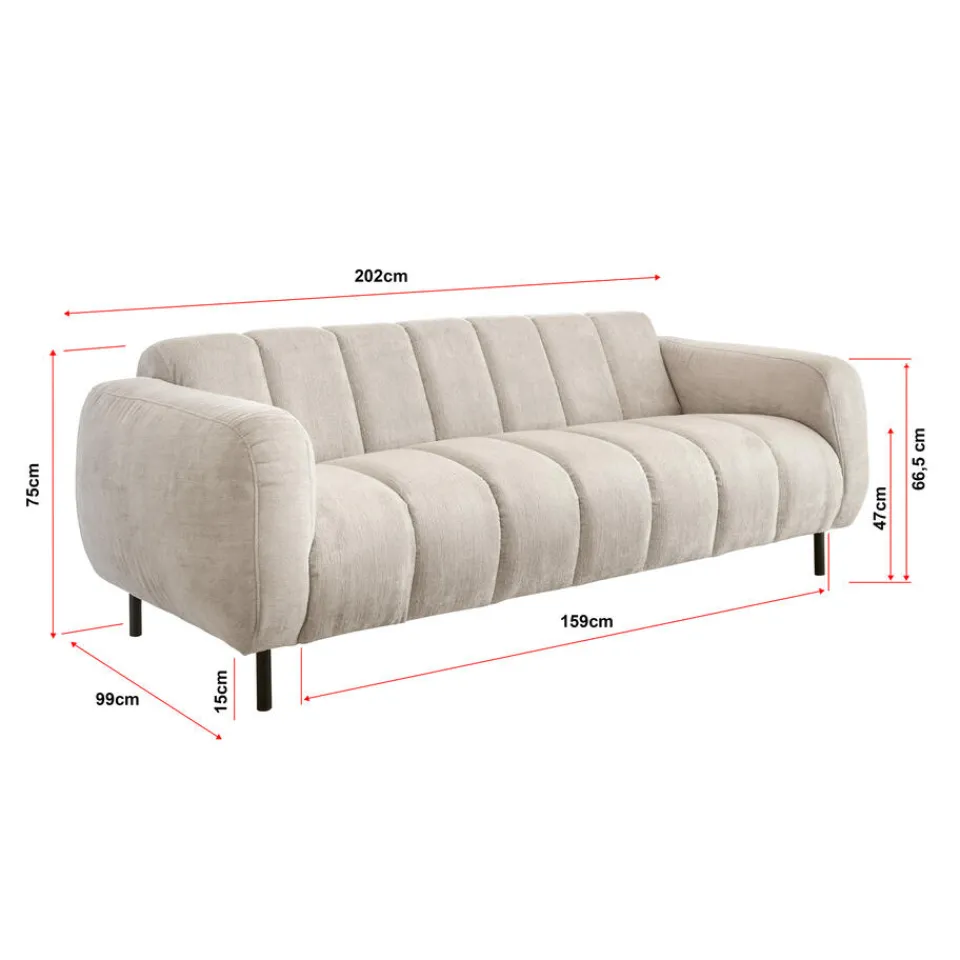 Bank Ruvo is een comfortabele bank met een eigentijdse uitstraling. De zand kleur geeft de bank een trendy en warme look. Deze 2,5-zits bank heeft een afmeting van 205x96x75 (lxbxh) centimeter.