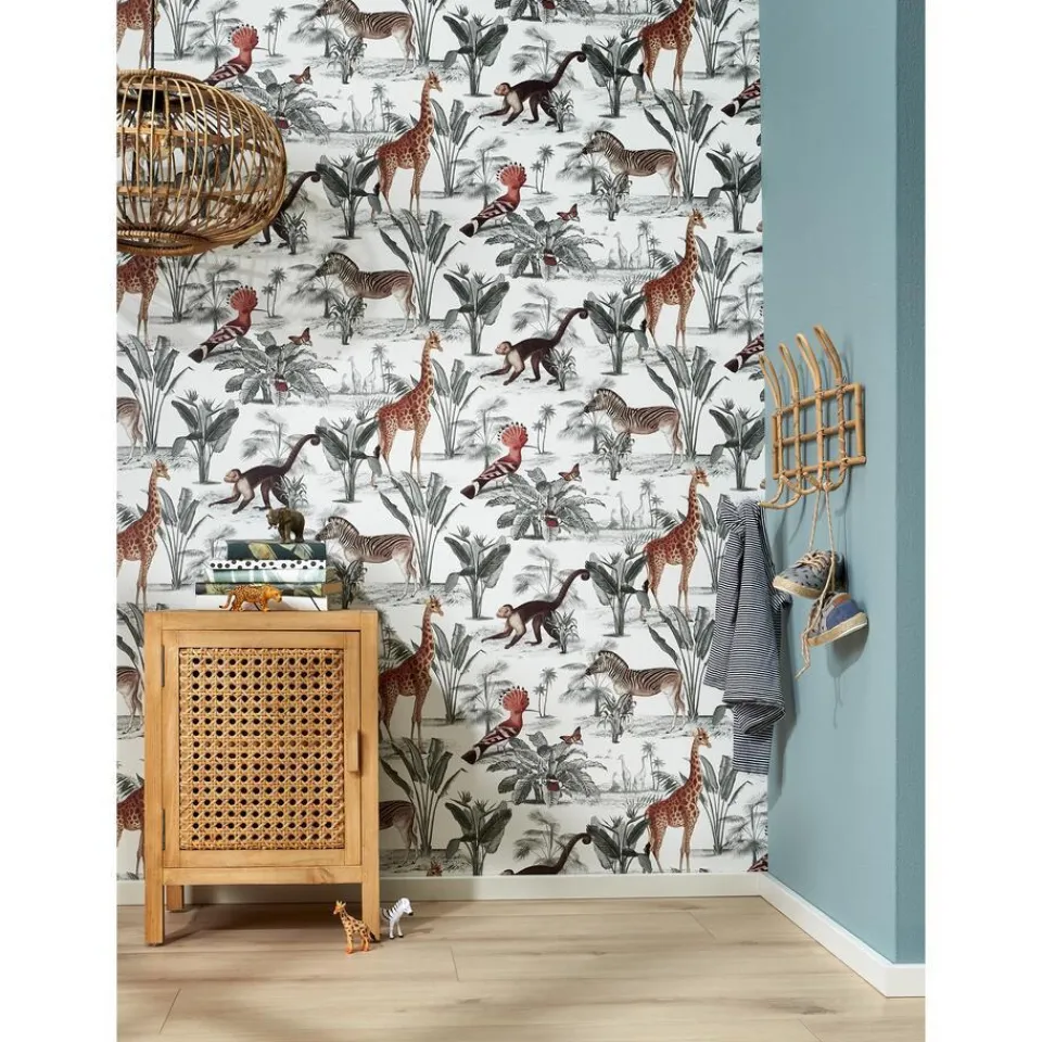 Sfeervol wit vliesbehang. Afwasbaar. Verspringend motief. Lijmen met Perfax Roll-on.SpecificatiesKleurMultikleurMateriaa…