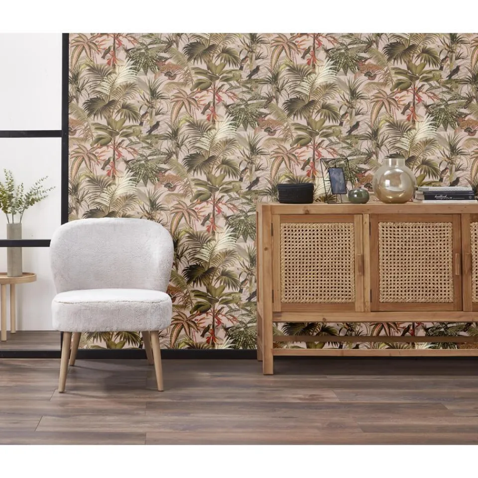 Lichtgroen vliesbehang met tropisch jungle dessin. 53 cm breed. 10 meter per rol.SpecificatiesKleurGroenMateriaalVliesPr…