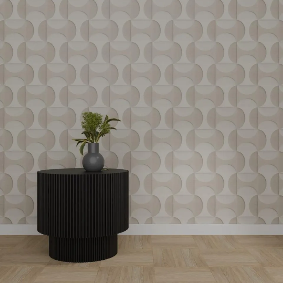 Vliesbehang Nova in sfeervolle taupe kleur met een prachtig decoratief patroon. Het behang is voorzien van het FSC-keurmerk. Plakken met Perfax Pink. 10 meter per rol.