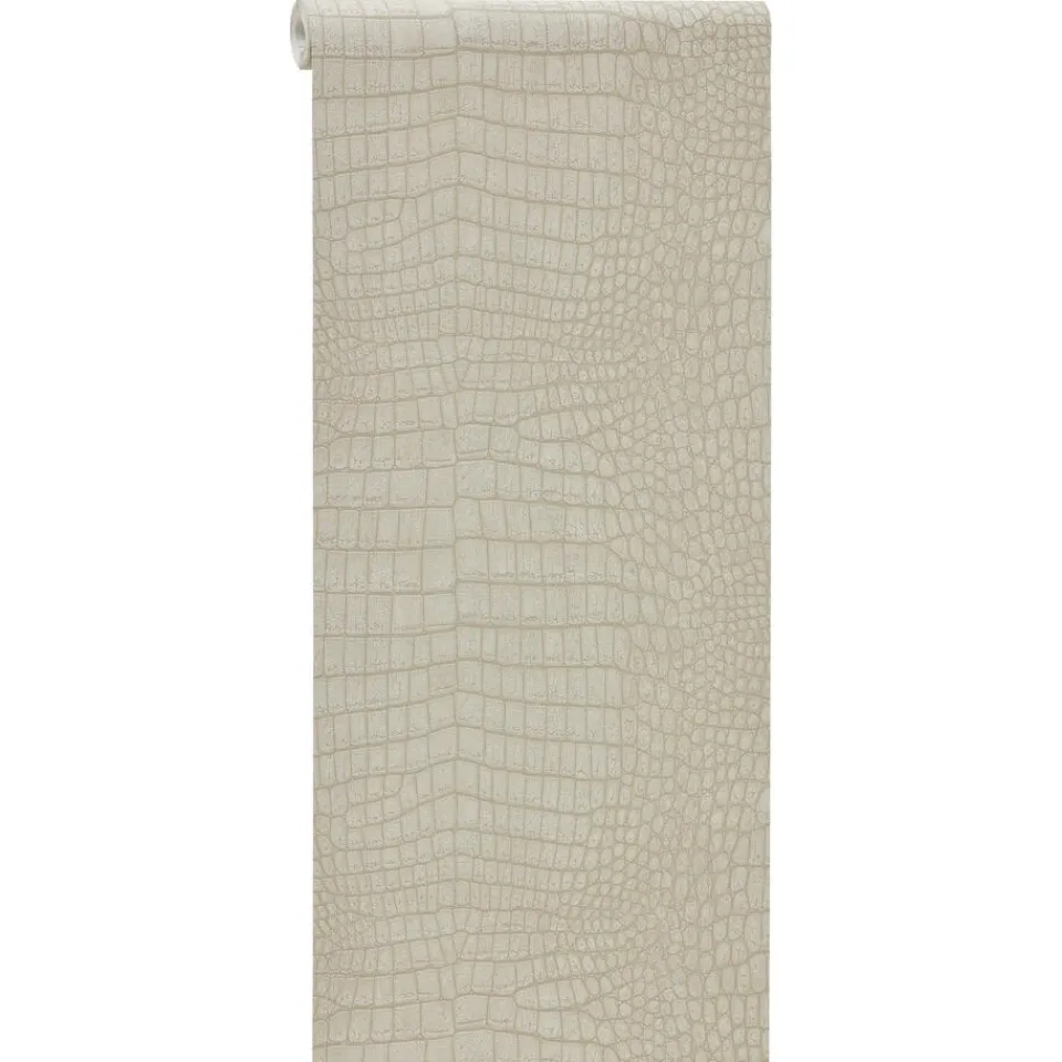 Behang Ravi in de kleur zand. Dit vliesbehang heeft een reptiel patroon. Gemaakt van 100% cellulose. Patroonhoogte is 32 centimeter.