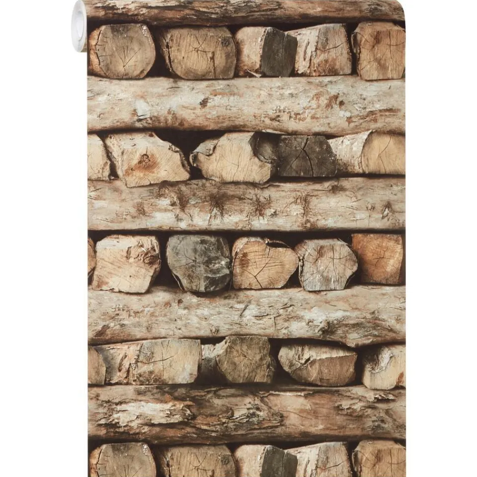 Vliesbehang met robuuste houtblokken print voor een natuurlijke look in huis. Goed afwasbaar. Voorzien van het FSC-keurm…