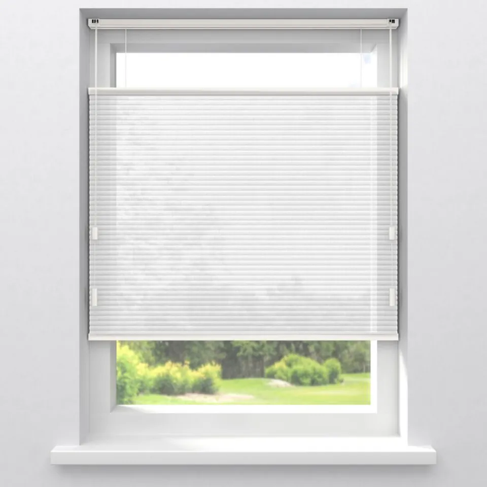 Lichtdoorlatende dubbel plissé van mat witte stof. De dubbel geplooide stof met een honingraatstructuur zorgt voor extr…