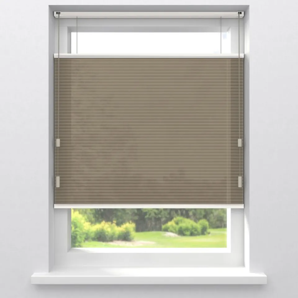 Lichtdoorlatende dubbele plissé zandkleurig met fijne structuur en witte achterzijde. De dubbel geplooide stof met een honingraatstructuur zorgt voor extra isolatie. De koorden zijn verwerkt in de honingraat en zijn niet zichtbaar. Verkrijgbaar als top down, top down bottom up of top down bottom up gespannen. Een top down bottom up gordijn kan zowel aan de bovenkant als de onderkant worden uitgevouwen voor volledige controle over de gewenste lichtinval en privacy. Een gespannen plissé is zeer geschikt voor draaikiepramen omdat de stof goed op zijn plek blijft. Op maat te maken en volledig naar wens samen te stellen. Bepaal zelf de kleur van het systeem en kies uit een bijpassende koordhanger van kunststof, rvs of zwart metaal.