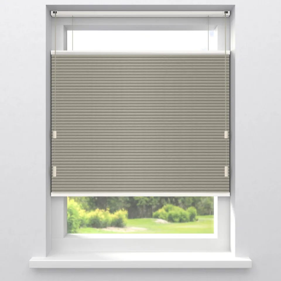 Verduisterend Plisségordijn Thirza Taupe is een dubbel plissé gordijn. Dit betekent dat het een honinggraatstructuur heeft en daardoor een luxe uitstraling geeft. Deze structuur zorgt voor een stilstaande luchtlaag, waardoor de warmte binnen blijft voor optimale isolatie en geluiddemping. Dit plissegordijn heeft een plooibreedte van 25mm, daardoor is het erg geschikt voor kleine tot middelgrote ramen.