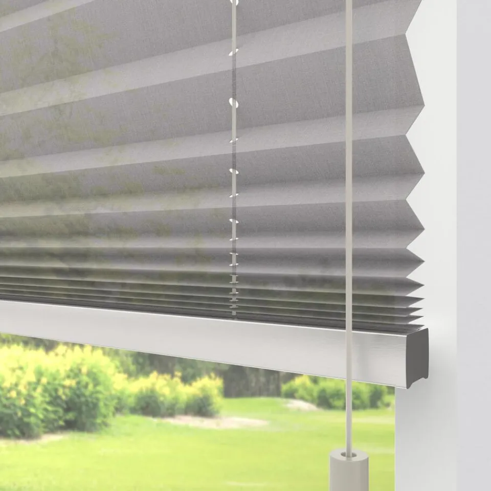 Lichtdoorlatende enkele plissé van naturel gemêleerde stof. Verkrijgbaar als top down, top down bottom up of top down …