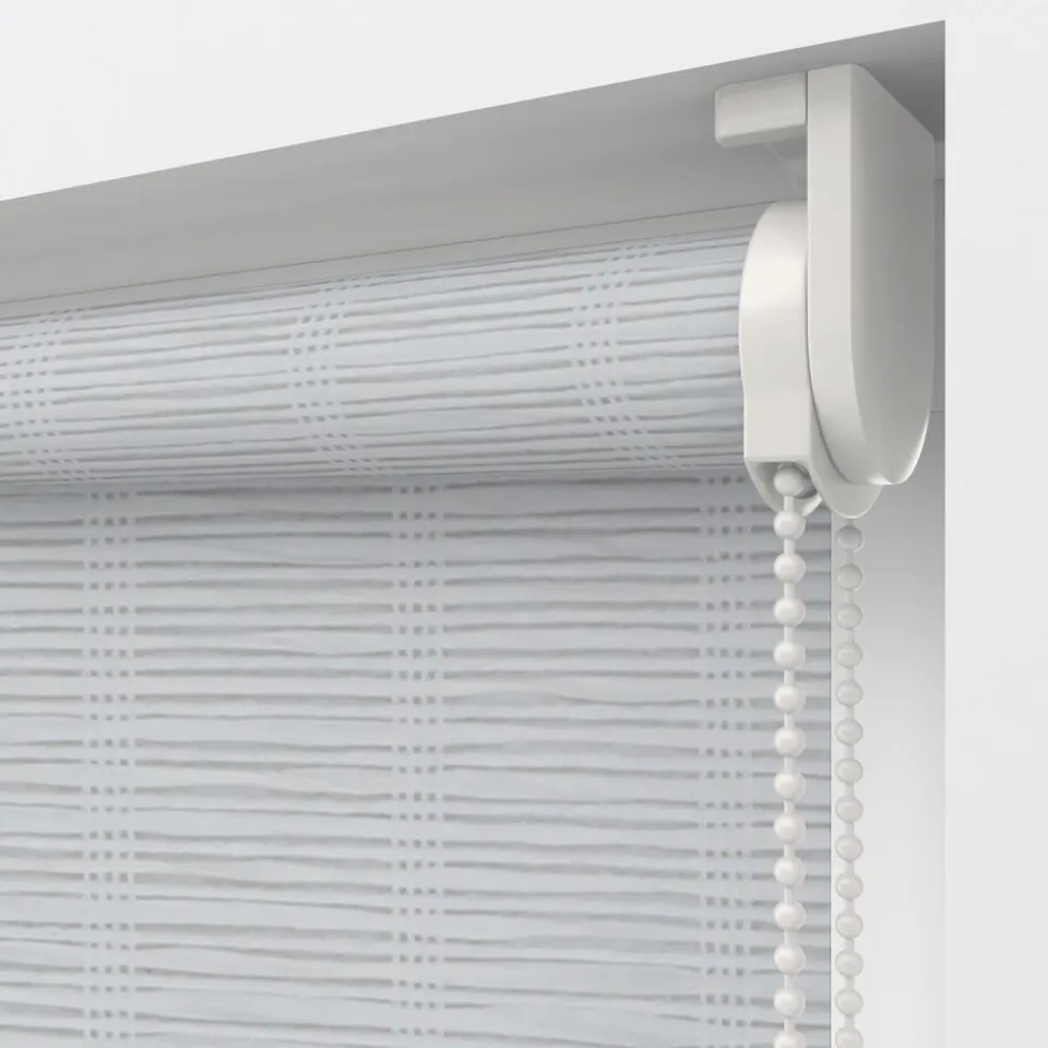 Transparant rolgordijn wit met kenmerkende structuur. Op maat te maken en volledig naar wens samen te stellen met een ru…