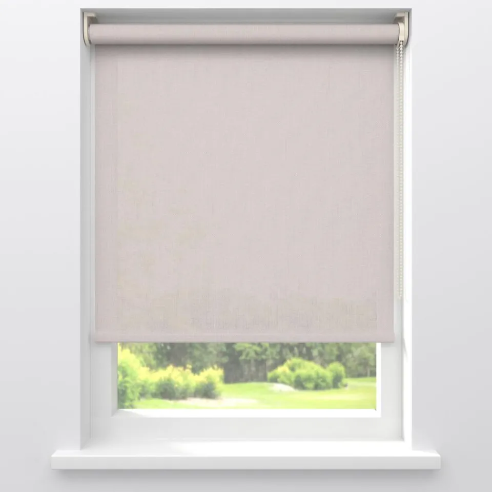 Transparant rolgordijn zandkleurig met structuur. De stof laat veel licht door en filtert lichtinval op een natuurlijke …