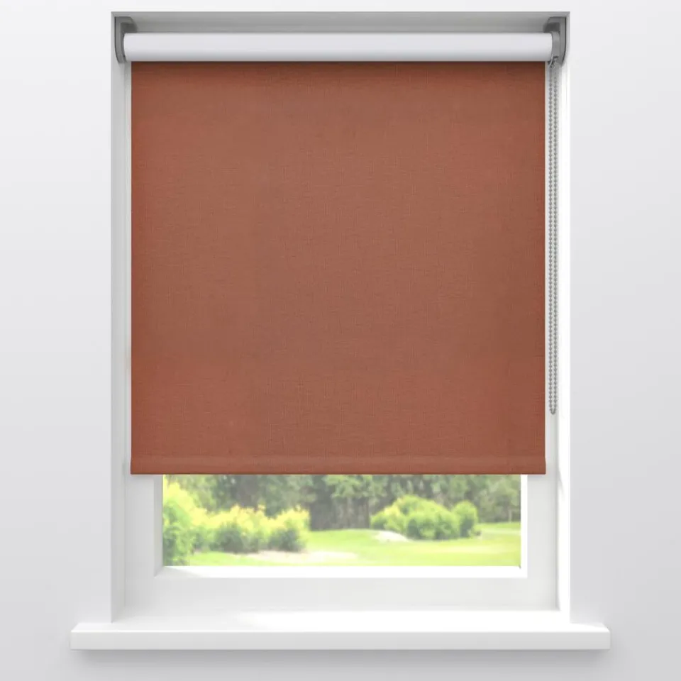 Verduisterend rolgordijn bruin. De witte achterzijde zorgt voor volledige verduistering. Ideaal voor slaapkamers maar ook te gebruiken voor keukens en andere woonruimtes. De stof kan tot 350 cm extra breed worden gemaakt en is geschikt voor grote ramen. Op maat te maken en volledig naar wens samen te stellen met een ruime keuze uit accessoires en uitvoeringen. Elektrische bediening en zijgeleiding is mogelijk. Ook geschikt voor draaikiepramen. Eenvoudig met een vochtige doek af te nemen.
