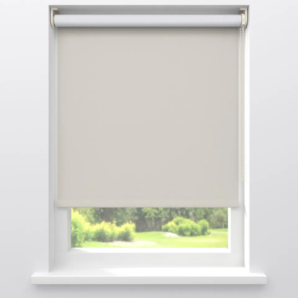 Verduisterend rolgordijn zandkleurig. De witte achterzijde zorgt voor volledige verduistering. Ideaal voor slaapkamers m…
