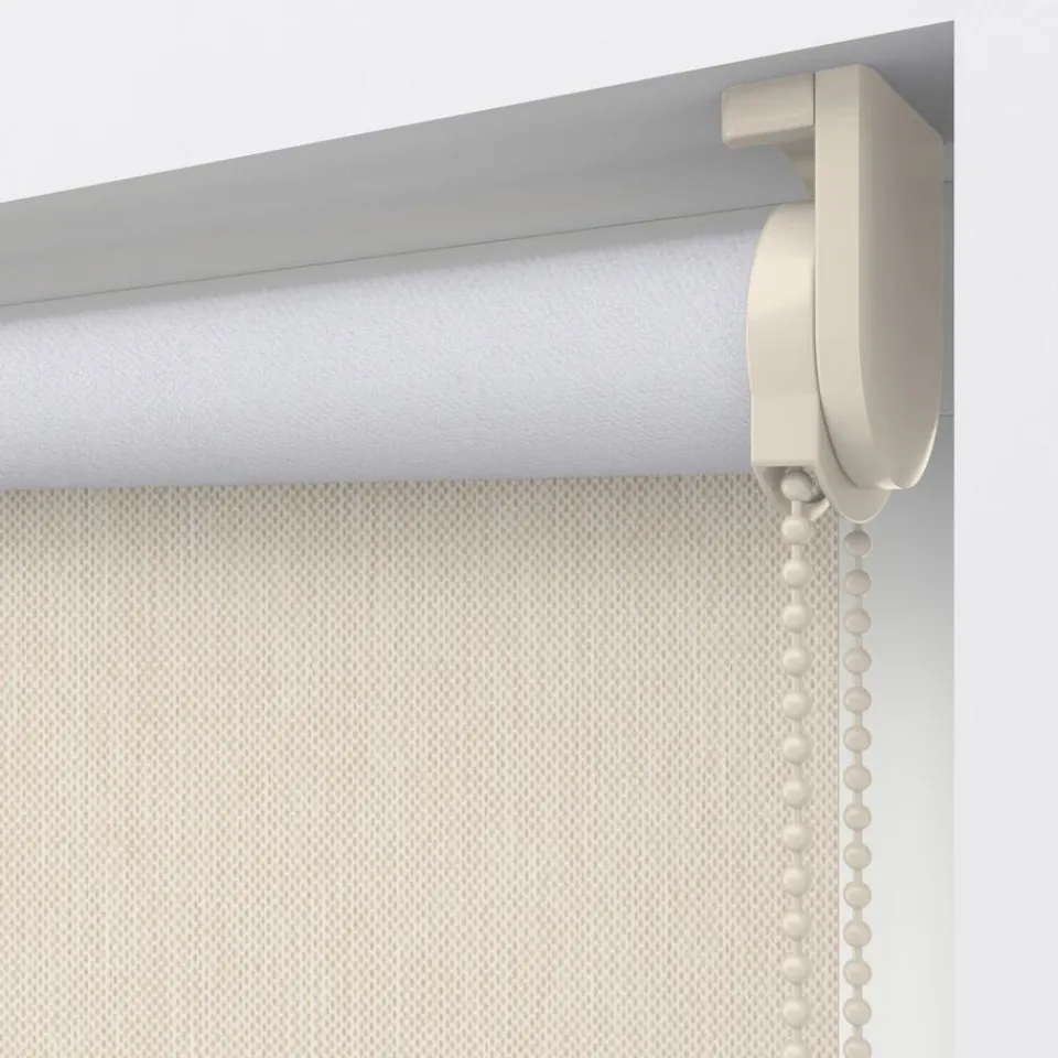Verduisterend rolgordijn zandkleurig gemêleerd met verticale garens. De witte achterzijde zorgt voor volledige verduist…