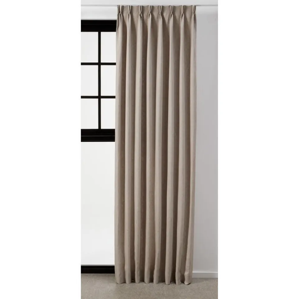 Soepelvallende naturelkleurige linnen gordijnstof. 140 cm breed.