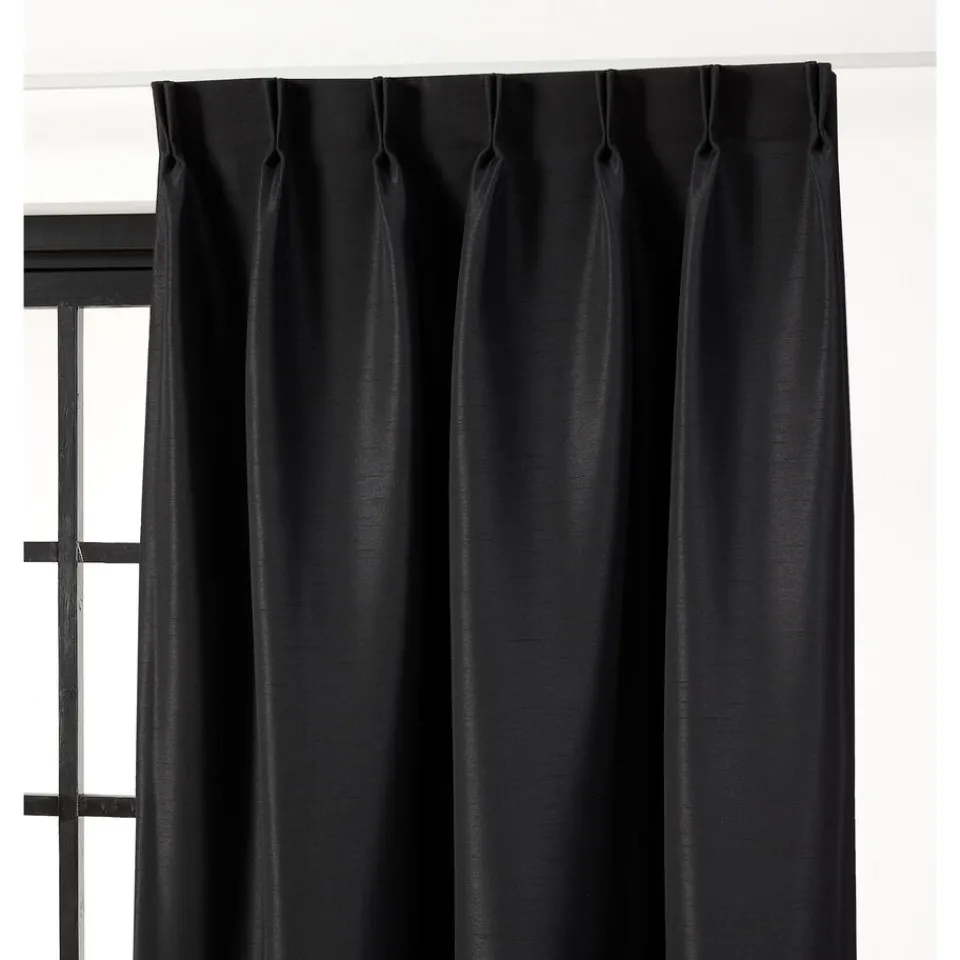 Verduisterende gordijnstof zwart. De glanzende soepelvallende stof zorgt voor een luxe uitstraling. Stevig, vormvast, sl…