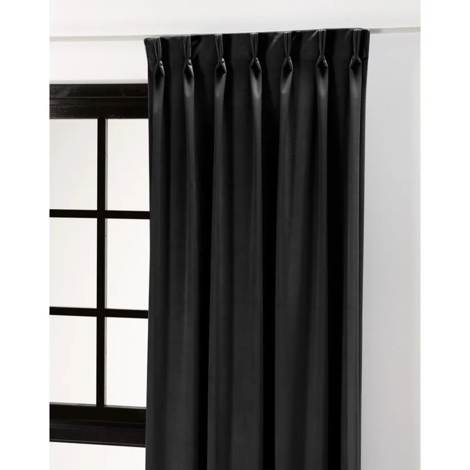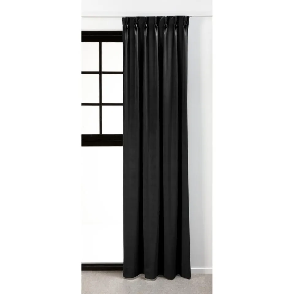 Gordijnstof gemaakt van glanzend zwart velours. Het zachte velours zorgt voor een stoere uitstraling. Stevig, vormvast e…