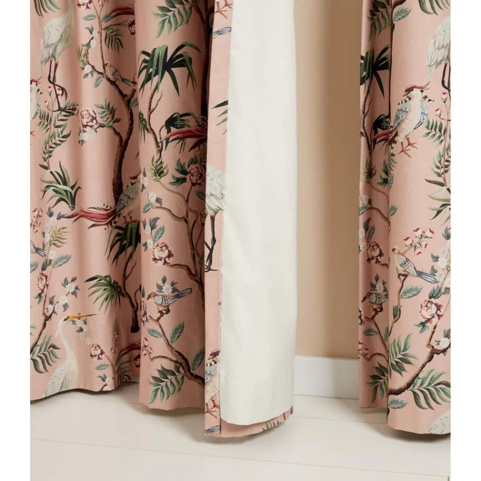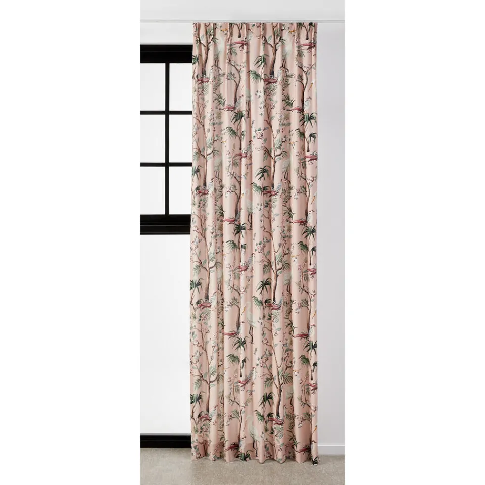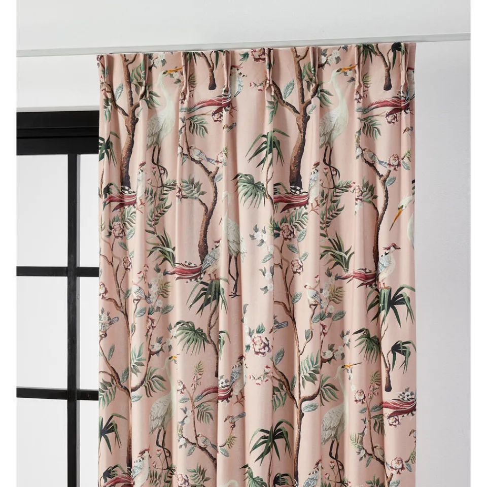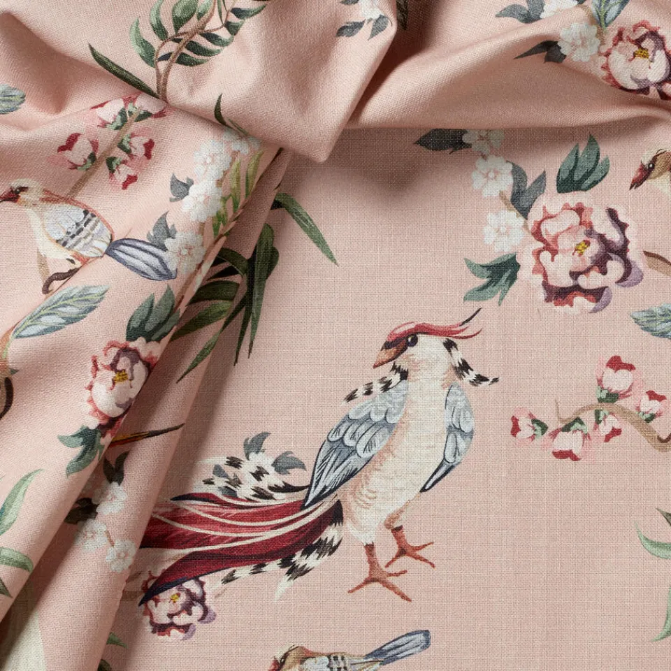 Lichtdoorlatende gordijnstof roze met romantische print. Soepelvallend, luchtig en stevig. Gemaakt van 100% katoen. 140 …