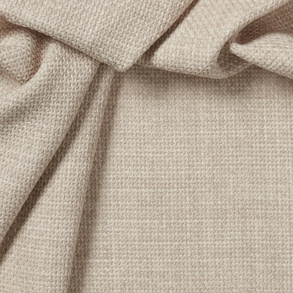 Lichtdoorlatende gordijnstof Kaat Ecru heeft een warme en sfeervolle uitstraling. De grof geweven gordijnstof is gemaakt van 85% gerecycled polyester en 15% polyester. Polyester is een vormvaste, krimpvrije en plooihoudende stof. Deze synthetische stof neemt nauwelijks vocht op en is hierdoor volledig maatvast. Dat wil zeggen dat de gordijnen van deze stof niet krimpen en uitzetten door invloed van luchtvochtigheid. Een ander voordeel van polyester is dat deze stof veerkrachtig is. Hierdoor kreuken je gordijnen veel minder, maar zijn scherpe vouwen wel moeilijker verwijderbaar. 145 cm breed.