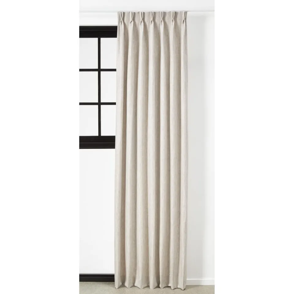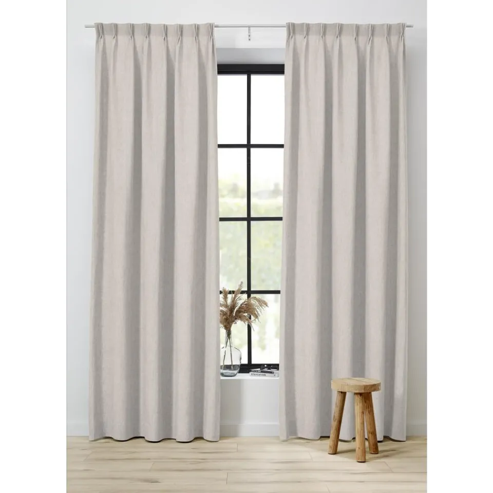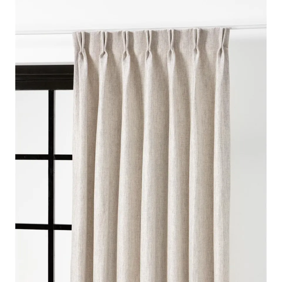 Soepelvallende zandkleurige gordijnstof. Stevig en kreukherstellend. 142 cm breed.