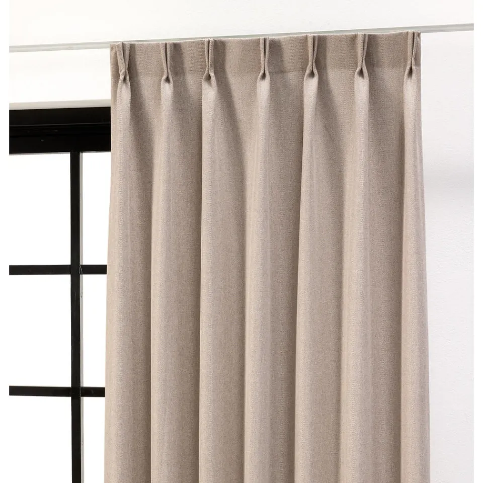 Gordijn Lieke is in een naturel kleur met warme tint. De stof is deels verduisterend en is gemaakt van 100% polyester. Dit zorgt dat de stof een lange levensduur heeft, slijtvast is, en makkelijk schoon te maken is met een vochtige doek.