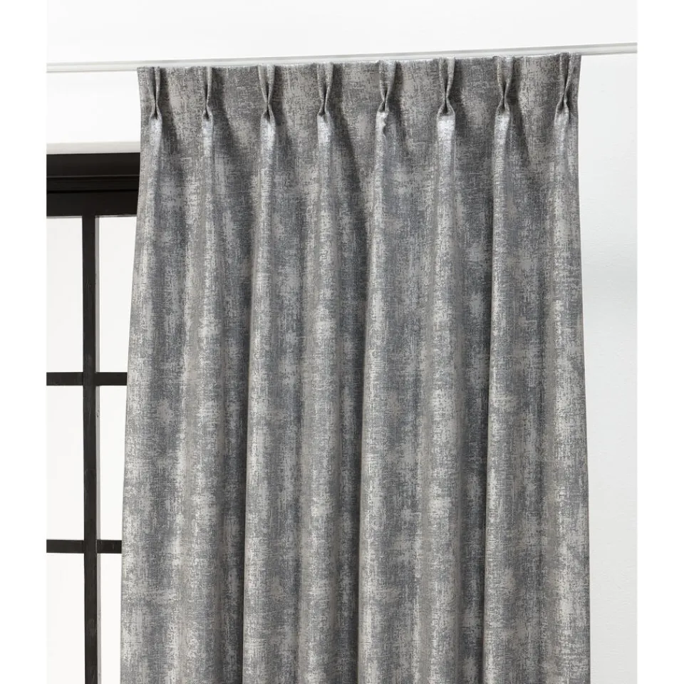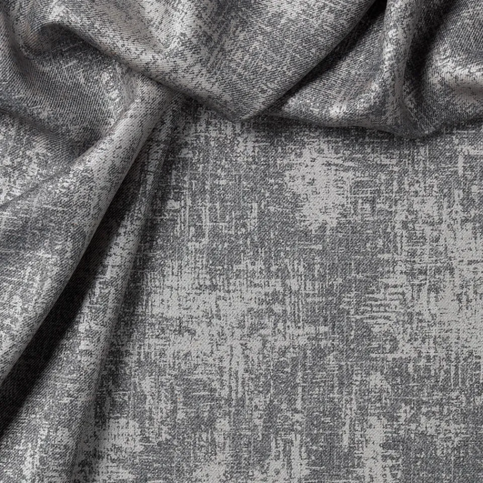 Verduisterende gordijnstof van stevig grijs materiaal met verweerde look. Soepelvallend en kreukherstellend. 138 cm breed.
