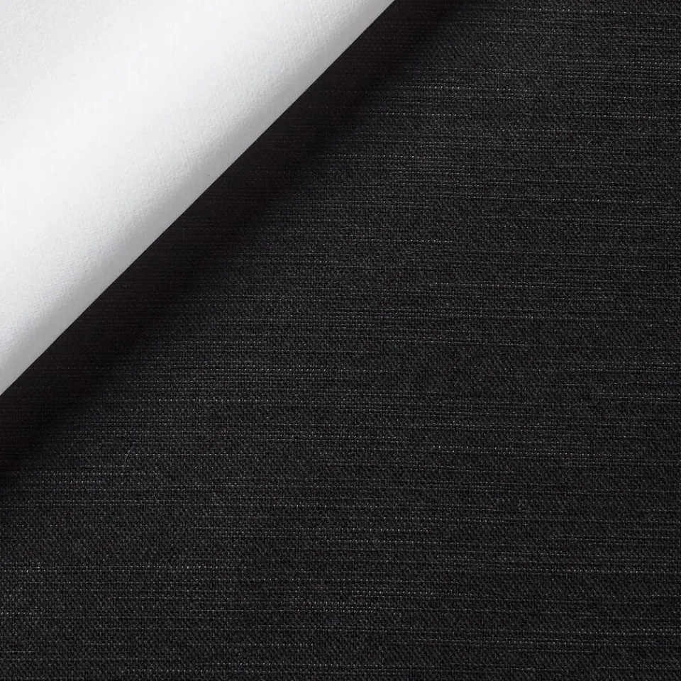 Verduisterende gordijnstof Toby in de kleur zwart is stijlvol en van uitstekende kwaliteit. Ben jij op zoek naar een prachtige verduisterende gordijnstof voor in de woonkamer, of juist voor in de slaapkamer? Met gordijnstof Toby kan het allemaal Stevig, vormvast en slijtvast. Dit black-out gordijn is aan de achterkant voorzien van een coating die ervoor zorgt dat dit gordijn 100% verduisterend is. Deze coating zorgt dat er geen licht door de stof komt. Daarom is de achterkant meestal wit en de voorkant is de gewone gordijnstof. Een black-out gordijn voelt wat stugger aan. Deze gordijnstof houdt, in tegenstelling tot dim-outs 100% het zonlicht tegen. Bij de confectie van deze kwaliteit kunnen kleine gaatjes ontstaan. Dit is inherent aan de stof en kan niet voorkomen worden. 140 cm breed.