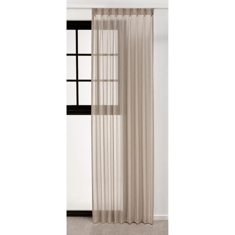 Behoefte aan meer licht maar heb je wel de behoefte aan de nodige privacy? Kies dan voor een inbetween in de woonkamer en combineer deze met een mooi verduisterend overgordijn. Inbetween Bram Zand is een transparante gordijnstof van 100% polyester. Deze gordijnstof heeft een nonchalante, natuurlijke uitstraling met een subtiele glans. Prachtig te combineren in een waveplooi. Zeer sterk en slijtvast. Kreukgevoelig. 300 cm hoog.